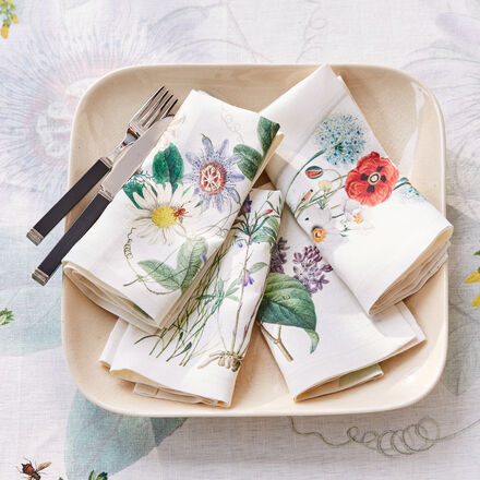 4er-Set Leinenservietten Buntes Sommerblumenmuster 100 % langlebiges Leinengewebe Besonders reißfest und strapazierfähig Hochwertig verarbeitet Aus sizilianischer Manufakturfertigung Tischwäsche aus Leinen ist ein zeitloser Begleiter, der mit den Jahren immer schöner wird Erstklassiges Design, feinste Leinenqualität und perfekte Verarbeitung verleihen dieser Tischwäsche aus einer sizilianischen Traditionsweberei mit über 60 Jahren Erfahrung ihren unverwechselbaren Charakter Leinen wird aus den Fasern der Flachspflanze gewonnen Auf dem Leinengewebe der Servietten mit natürlichem Glanz leuchtet das großformatige Motiv mit sommerlichen Blumen in ausdrucksstarken Farben Die Farbbrillanz bleibt auch nach vielen Wäschen erhalten, der Stoff wird geschmeidiger und gewinnt an Charme Hochwertig gefertigte Stoffservietten werten jeden Tisch auf und sind ein wichtiges Detail stilvoller Tischkultur Von jeder Tischwäsche wird nur eine limitierte Auflage gefertigt.