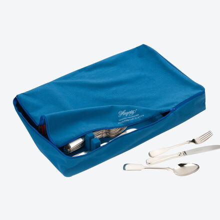 Bestecktasche für bis zu 120 Silberteile Aus luftdichtem Spezialgewebe Schützt Besteck vor Anlaufen und Kratzern William J. Hagerty, erfahrener Hersteller feiner Silber-Pflegemittel, fertigt die Anlaufschutz-Bestecktasche aus luftdichtem Spezialgewebe. Durch einen Reißverschluss verschlossen, wird die Oxidation nahezu vollständig unterbunden. Absolut sicher vor Anlaufen und Verkratzen geschützt, bewahren Sie darin bis zu 120 Silberteile übersichtlich auf. Passt in nahezu alle Schubladen. 48,5 x 30,5 x 9 cm hoch