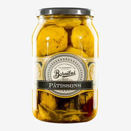 Mild-aromatischer Ufo-Kürbis Direkt nach der Ernte eingelegt Süß-saure Marinade Vielseitig verwendbar Entdecken Sie eine besondere Delikatesse: Die eingelegten Patisson-Kürbisse überzeugen nicht nur durch ihre auffällige, ufoartige Form, sondern auch durch ihre zarte Textur und den angenehm milden Geschmack. Diese kleinen Mini-Gartenkürbisse, auch bekannt als Ufo-Kürbis, werden direkt nach der Ernte schonend verarbeitet und in eine fein abgestimmte süß-saure Marinade mit Dill, Zwiebeln und Knoblauch eingelegt. Die Herstellung erfolgt in einem traditionsreichen Unternehmen, dessen Geschichte bis ins Jahr 1855 zurückreicht. Ein Teil der Verarbeitung geschieht bis heute von Hand, wodurch jede Charge besondere Sorgfalt erfährt. Die Patisson-Kürbisse eignen sich ideal als raffinierte Beilage, als farbenfrohe Ergänzung in Salaten, als Antipasti oder als kreativer Bestandteil warmer Gerichte. Rein natürliche Zutaten, ohne jegliche Farb- und Konservierungsstoffe.