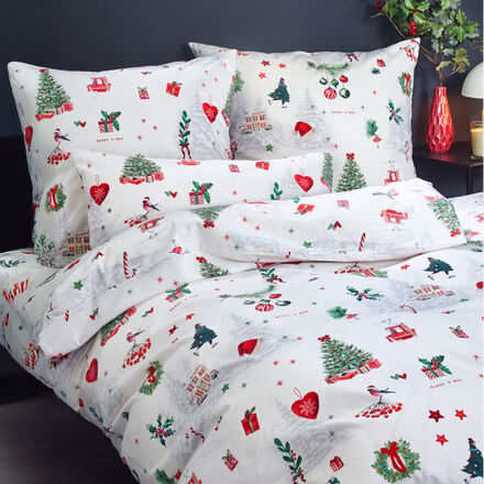 Nostalgisch-edler Look Moderne Adaption typischer Weihnachtsdekorationen Feiner Flanell aus 100 % Premium-Baumwolle Bester Schlafkomfort im Winter Passender Kissenbezug 40 x 80 cm separat bestellbar Die Advents- und Weihnachtszeit ist etwas ganz Besonderes – und das darf man ruhig auch im Schlafzimmer sehen und spüren Unsere liebevoll gestaltete Flanell-Bettwäsche bringt festliche Stimmung, winterliche Romantik und kuschelige Wärme in Ihr Zuhause Sie zeigt detailreiche Illustrationen im nostalgischen Stil, modern interpretiert – mit typischen Weihnachtsmotiven wie Tannenbäumen, Kugeln, Kränzen oder Schleifen, die an die Magie dieser besonderen Jahreszeit erinnern Die hochwertige Flanellqualität aus 100 % reiner Baumwolle fühlt sich weich und wärmend auf der Haut an – ideal für kalte Winternächte Dank ihrer atmungsaktiven und temperaturausgleichenden Eigenschaften sorgt die Winterbettwäsche für ein rundum behagliches Schlafklima.