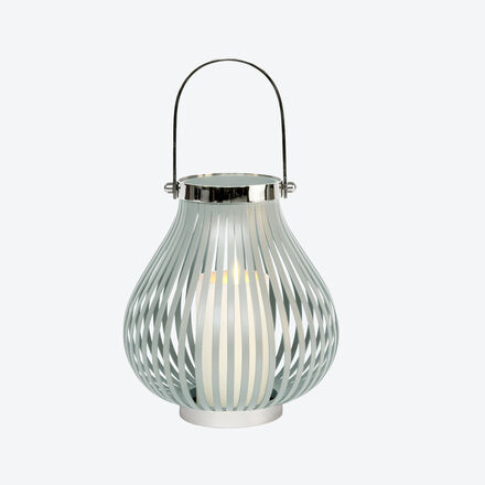 Metall-Windlicht handwerklich gefertigt Mit edel vernickelten Details Birnenförmiges Design Verschiedene Farben und Ausführungen Neutrales Dekor für Ganzjahresnutzung Sanfter Lichterglanz beruhigt und schaffte eine behagliche Atmosphäre Die leicht birnenförmige Metall-Laterne von Lambert ist mit ihrer frischen Farbgebung, handwerklichen Fertigung und dem eleganten Design eine edle Bereicherung für Ihre stimmungsvolle Beleuchtung Feine Metallstreifen werden oben und unten von einem vernickelten Band zusammengehalten Auch der Griff ist aus vernickeltem Edelstahl Die farbige Pulverbeschichtung wird bei hohen Temperaturen eingebrannt, daher kann das Windlicht auch im Außenbereich genutzt werden Bei schlechtem Wetter sollten Sie die Laterne jedoch schützen, um Korrosionsflecken auf der edlen Vernickelung zu vermeiden Wachsreste sollten Sie immer nur mit warmem Wasser lösen, niemals mit einem spitzen Gegenstand entfernen, denn der könnte die Oberfläche beschädigen.