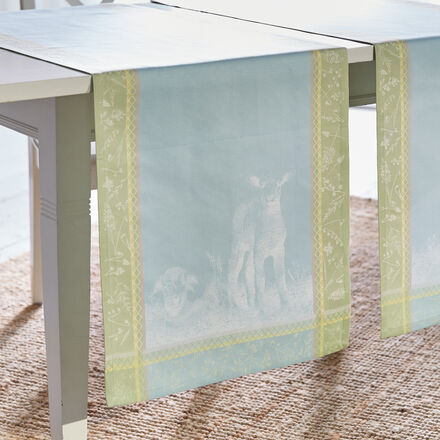 Halbleinen-Tischläufer im Provence-Stil Vereint die besten Eigenschaften von Baumwolle und Leinen Jacquardgewebte feine Muster Harmonischer Farbmix in zarten Pastellfarben Robuste Qualität Sorgfältige Verarbeitung Passend dazu Servietten und Tischdecke Der Tischläufer mit mehreren abgepassten Rahmen in unterschiedlichen Pastellfarben strahlt mit jeder Faser den Charme der Provence aus Nur in Jacquardwebung können derart komplexe Muster direkt in den Stoff gewebt werden Feine Silhouetten verschiedender Gräser, Hühner, Gänse und grafische Bordüren machen aus der Tischwäsche in harmonisch abgestimmten Farben ein Schmuckstück nicht nur für die Landhausküche Der Materialmix aus Leinen und Baumwolle gibt dem Stoff seine robuste Qualität, leichte Optik und seine natürliche Geschmeidigkeit Ein feines Stück Handarbeit mit sorgfältig gefertigten Couvertecken Passend zum Tischläufer bieten wir 6 Servietten (Nr 114HA18) und Tischdecken (Nr 114HA20) in zwei Formaten an.