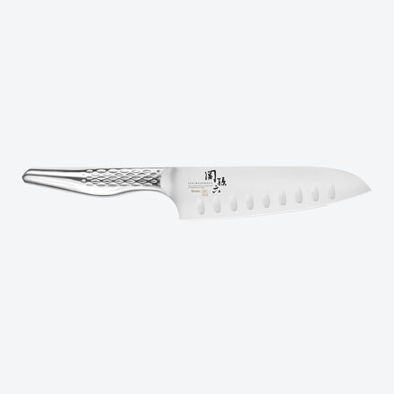 Extra scharfe Klinge durch neue Pra?zisionstechnologie Klinge aus 1K6 Edelstahl Griff aus 18/8 Edelstahl Klingenhärte 58 (±1) HRC Elegante Optik, besonders hygienisch Rostfrei Mit großem technischen Aufwand werden die komplett aus Edelstahl gefertigten Seki Magoroku Shoso Messer in der japanischen Edelschmiede KAI produziert Durch ihre kühle Eleganz sind sie ein Schmuckstück in jedem Haushalt Ihre Schärfe, Robustheit und Schnitthaltigkeit sind so überzeugend, dass sie sich perfekt für den täglichen Einsatz in der Küche eignen Die Messerklingen werden aus 1K6 Edelstahl mit einer Härte von 58 (±1) HRC gefertigt und im Anschluss mit langsamer Schleifgeschwindigkeit geschärft, was sie besonders beständig macht und für einen sauberen und präzisen Schnitt sorgt Santoku bedeutet übersetzt „die drei Tugenden“ und diese lassen sich auf die guten Eigenschaften des Kochmessers für das Schneiden von Fisch, Fleisch und Gemüse übertragen.