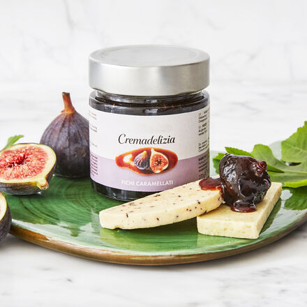 Vollreife, hocharomatische Früchte Traditionell von Hand eingekocht Verfeinert mit Karamell und Rum Verfeinern Desserts, Torten Ein Genuss auch zu reifen Käsesorten In einer 1952 gegründeten Süßwarenmanufaktur im Herzen der Emilia-Romagna entsteht diese einzigartige Delikatesse. Beste, sonnenverwöhnte Feigen werden nach traditioneller Herstellungsweise langsam und schonend in reiner Handarbeit eingekocht. Verfeinert mit Karamell, Zitronen- und Orangenschale sowie etwas Rum sind sie ein einmaliger Genuss als delikate Krönung süßer Dessert- und Tortenkreationen sowie zu reifen Käsesorten. Ohne jegliche Farb- und Konservierungsstoffe.