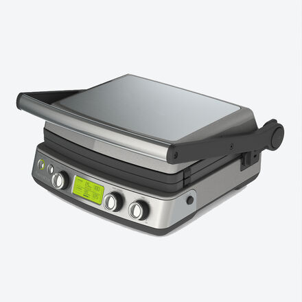 7 Programme für perfekte Grillergebnisse Aufgeklappt als Tischgrill mit 2 separaten Grillflächen nutzbar Kontaktgrill für perfekte Steaks, Fleisch, Fisch, Burger, Gemüse, Paninis Frei von PFAS Manuell oder mit 7 voreingestellten Programme gelingen Steaks, Fleisch, Fisch, Burger, Gemüse, Paninis perfekt, mit den separat erhältlichen Platten auch belgische Waffeln. Nutzen Sie das Gerät geschlossen als Kontakt- oder aufgeklappt als Tischgrill (Temperatur beider Grillplatten separat steuerbar von 80-230 °C). Seiten mit Grillstegen zeichnen schöne Muster, glatte Gegenseiten sind ideal als Plancha- oder Teppanyaki-Grill. Strapazierfähige, diamantverstärkte Keramik-Antihaftbeschichtung, frei von PFAS (gesundheitsschädliche Stoffe herkömmlicher Antihaftbeschichtungen), kratzfest gegen Metall-Kochbesteck. Korpus Edelstahl, 34 x 35 x 19 cm (B/T/H), wiegt 6,5 kg, Grillfläche 30 x 27,5 cm, rutschfeste Füße, 230V/2.200W, 90 cm Kabel, Waffelplatten 31,5 x 31 x 8 cm.
