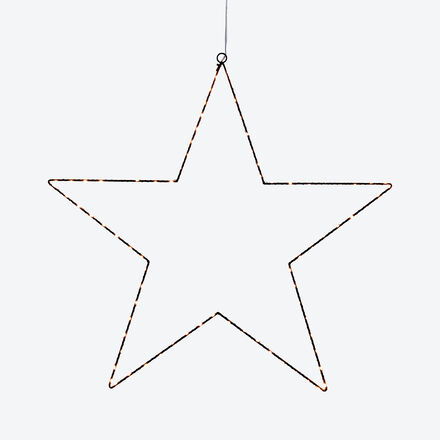 Die filigrane Silhouette aus wahlweise schwarzem oder silberfarbenem Kunststoff ist mit einem speziellen Draht umwickelt, auf dem die warm-gelb leuchtenden LEDs angeordnet sind. Als Fensterschmuck oder Dekoration im Wohnbereich eignet sich die kleine Indoor-Variante. Mit Trafo ausgestattet erlauben die beiden größeren Leuchtsterne ebenso den Einsatz im Freien. Klein (S) Ø 30 cm, 40 LEDs, 6-Stunden-Timer, benötigt 2 x AAA-Batterien (nicht im Lieferumfang enthalten), Mittel (M) Ø 50 cm, 60 LEDs, Groß (L) Ø 70 cm, 80 LEDs, M + L mit Trafo, IP44 geprüft, korrosionsfrei, jeweils 5 m Anschlusskabel.