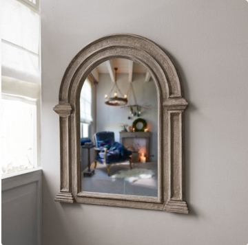 Erleben Sie den Zauber vergangener Zeiten – dieser wertvolle und wunderschöne Spiegel bringt ein wundervoll nostalgisches Flair in jeden Raum. Der hölzerne, breite Rahmen ist aufwendig gearbeitet. Er ist im französischen Stil gehalten und wirklich très chic. Er wirkt wie ein antiker Torbogen, der einen ganz besonderen Rahmen für Ihr Spiegelbild bildet. Dieser schöne Spiegel sorgt einerseits dafür, dass Sie sich immer bestens betrachten können, zudem vergrößern Spiegel optisch die Räume. Dieser Torbogen-Spiegel natürlich ganz besonders! Als wenn er ein Tor in einer andere Welt öffnen würde. Und auch der dekorative Effekt ist natürlich nicht von der Hand zu weisen. Ob in einem einladenen Flur, Ihrem Schlafzimmer oder im Bad, der Spiegel versprüht überall seinen ästhetischen Charme. Nicht zu groß und nicht zu klein in den Maßen – einfach eine wunderbare Ergänzung in jedem Interior. Tauchen Sie ein in eine andere Welt!