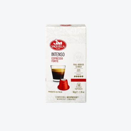 Italienischer Kaffee in der praktischen Kapsel Sauber, sicher & schnell Kräftiger Geschmack, voller Körper Feine Noten von Karamell und Schokolade Bereits seit 1856 und in mittlerweile 5 Generation widmet man sich bei Saquella Caffè mit Leidenschaft dem Kaffee Der Röster, der auch Bars und Restaurants beliefert, gilt so als einer der bewährtesten auf dem italienischen Markt Die sorgfältige Auswahl hochwertiger Rohkaffees sowie ihre schonende Röstung bringen wunderbar vollmundige, aromatische Kompositionen hervor Mit den Nespresso® Kapseln Intenso gelingt Ihnen auf Knopfdruck ein klassisch-italienischer Espresso Dunkel, kräftig und intensiv begeistert die Mischung brasilianischer und zentralamerikanischer Rohkaffees mit einer perfekten, haselnussbraunen Crema Dezente Noten von Karamell und Schokolade verleihen ihm eine herrliche Süße und Vollmundigkeit Lang anhaltender, angenehmer Nachgeschmack.