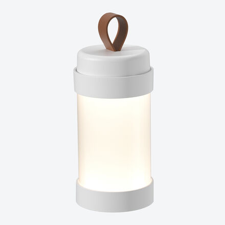 Outdoor-Tischleuchte, Kerzenschein, Weiß, mit Trageschlaufe, Ø 7,5 cm, 18 cm hoch, 500 g, mit Ladekabel