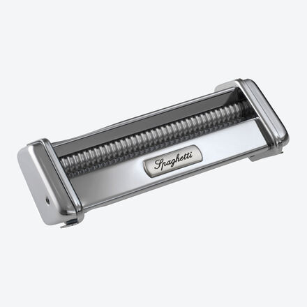 Kompatibel mit Nudelmaschine Atlas 150 Zubehör für 6 verschiedene Pasta-Formen Hochwertiger Chromstahl und eloxiertes Aluminium Original italienische Pasta-Aufsätze Für selbst zubereitete Lieblingsnudeln Frische Pasta in herrlicher Vielfalt bereiten Sie einfach und professionell mit der Nudelmaschine Atlas 150 und den Pasta-Aufsätzen für Ihre Lieblingsnudelsorten zu. Die berühmteste Nudel der Welt stellen Sie ab sofort ganz einfach selbst her. Mit einem Durchmesser von 2 mm und ihrer runden Form ist sie ideal für alle Saucen und Geschmacksvorlieben (Regler-Position Nr. 4 auf der Nudelmaschine). Chromstahl und eloxiertes Aluminium. 18 x 8 x 4,5 cm (B/T/H) Auch für Pastamaschine 086L01 geeignet.
