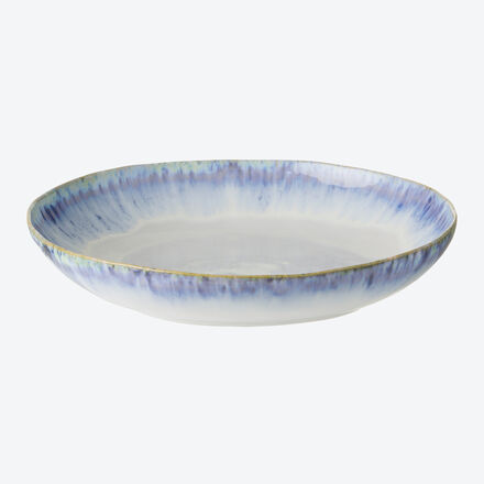 Portugiesische Fayence-Keramik Steingut-Geschirr Ausgefallene organische Tellerform Dekorative Verlaufglasur in maritimen Blau Durch Brennen unempfindlich und temperaturbeständig von -20 bis 250 °C Mikrowellen- und Spülmaschinenbeständig Die Fayence-Kunst ist in Portugal mit den berühmten Azulejos, den typischen blau-weißen Fliesenkacheln in und an Häusern, allgegenwärtig Auch in der portugiesischen Tischkultur ist keramisches Kunsthandwerk geschätzt Diese mediterrane Kollektion ist inspiriert von der einzigartigen Algarveküste mit ihren blauglitzernden Lagunen und Kanälen, den in der Sonne strahlenden Sandstränden und Salinen Sie finden sich wieder in der organischen Form der Servierschüssel, den maritimen Blautönen der Verlaufglasur Diese ausgefallene und hochwertige Servierschüssel bringt die lichte Atmosphäre der Algarve in Ihr Ambiente Sie werden sich bei jedem Gebrauch erneut darüber freuen Das glasierte Fayence-Geschirr wird bei fast 1200 °C gebrannt.