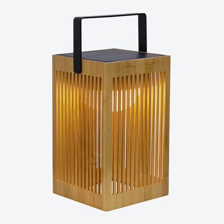 Nachhaltige Tischleuchte aus Bambusholz Handgefertigt im modernen Design Flexibel ohne Strom, aufladbares LED-Leuchtmittel mit Solar oder USB Für drinnen und draußen geeignet Dimmbar, Leuchtzeit 6-10 Stunden Die warme Maserung des Bambusholzes und das gradlinige Design geben der Solar-LED-Lampe ihre außergewöhnliche Klasse Äußerst dekorativ und dazu noch flexibel ohne Strom nutzbar, erfüllt die handgefertigte Tischlampe die hohen Ansprüche an moderne Beleuchtungen für den Innen- und Außenbereich Der Clou ist das wiederaufladbare LED-Leuchtmittel, das magnetisch unterhalb des Deckels befestigt wird Es wird es durch das große Solarpanel im Deckel oder alternativ mit dem USB-Kabel effizient aufgeladen So ist die Gartenlampe aus Naturmaterialien nicht nur flexibel einsetzbar, sondern auch noch ein umweltfreundliches Gartenlicht Die Leuchtzeit der Solarleuchte mit LED beträgt je nach Intensität der Nutzung 6-20 Stunden.