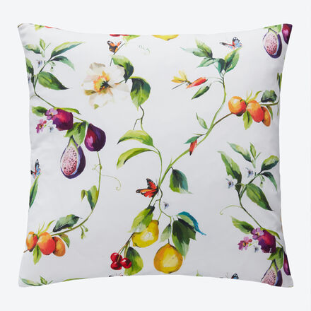 Sommerliche Kissenhülle Fein aquarelliertes Allover-Motiv Ressourcenschonender Druck Hochwertig verarbeitet und schadstoffgeprüft nach OEKO-TEX® STANDARD 100 Hergestellt in Deutschland Bio-Satin Bettwäsche mit dem gleichen Dessin passend bestellbar Saisonale Heimtextilien bringen Frische und Veränderung in Ihr Leben Das Motiv mit sommerlichen Früchten hat uns so gut gefallen, dass wir es Ihnen als Tisch- und Bettwäsche anbieten Die Abbildungen sind künstlerisch aquarelliert und werden ressourcenschonend aufgedruckt Auf der pflegeleichten Kissenhülle mit Reißverschluss kommt das vielfarbige Allover-Dessin toll zur Geltung und dekoriert Ihr Ess- oder Wohnzimmer oder Ihre gemütliche Sitzecke im Freien sommerlich frisch Hergestellt in Deutschland Die Tischwäsche-Serie mit Tischläufer (Nr 114HB05), Tischdecken (Nr 114HB06) und Kissenhülle setzt schöne jahreszeitliche Akzente.