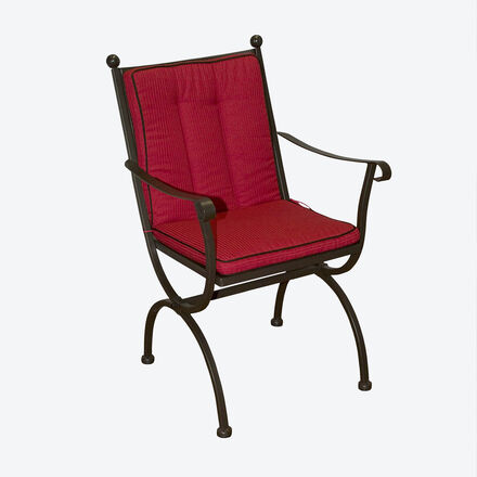 Die bequeme Stuhl-Auflage für Gartenstühle mit niedriger Rückenlehne bietet mit einer Stärke von ca. 5 cm ein angenehm einladendes Sitzgefühl für eine lange Verweildauer. Die Komplettauflage mit stabiler, farbiger Randverstärkung (Keder) ergänzt in Form und Dessin sehr harmonisch passende Gartenmöbel und rundet das Gesamtbild Ihrer Sitzgruppe ab. Die Auflage kann mit Bändchen am Gestellt fixiert werden, sodass sie perfekt sitzt und nicht verrutscht. Der 100% Polyacryl-Bezug ist äußerst pflegeleicht und schmutzabweisend. Sollte die Auflage dennoch einmal schmutzig sein, können Sie die Auflagen komplett von Hand waschen und zum Trocknen aufhängen.
