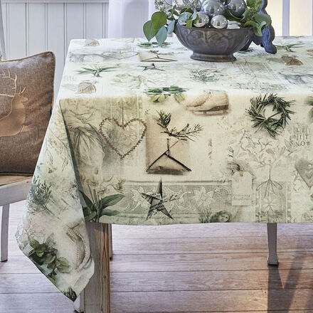 Wie mit feiner Pinselführung gemalt, entfaltet die detailverliebt dargestellte Winterwelt ihren Zauber. Der Entwurf aus spanischem Design-Atelier wird in deutscher Atelierfertigung hochwertig umgesetzt. Besonders florale Motive wie die weiße Clematis beeindrucken mit ihrer plastischen Darstellung und garantieren durch die Verwendung von Indanthrenfarbstoffen Licht- und Farbechtheit. Strapazierfähig aus Panama-Gewebe gefertigt verfügt die elegante Tischwäsche über angenehm schweren, volumigen Griff. Tischsets sind mit uni-dunkelgrüner Borte eingefasst und hinterlegt. Sauber und fest vernähte Kuvertsäume. 100 % Baumwolle, schwere Qualität 260 g/m², bedruckt. Feinwäsche 30 °C. Sondergrößen auf Anfrage möglich.