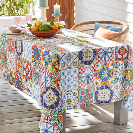 Mediterrane Tischdecke aus toskanischer Manufaktur Exquisite, farbenfrohe Kachel-Optik im Camastra-Dessin Baumwollstoff in Panamabindung im typischen Flecht-Look Besonders reißfest und strapazierfähig Sorgfältige Verarbeitung In dieser mediterranen Tischdecke aus toskanischer Manufakturfertigung ergänzen sich Dessin, Webart und Verabreitung zu einer exquisiten Tafeldekoration Der robuste Baumwollstoff erhält durch das Weben in Panamabindung seinen charakteristischen Flecht-Look Diese Bindungsart ist eine abgewandelte Form der Leinwandbindung und wird auch Würfel- oder Mattenbindung genannt, weil das Gewebe eine würfelartige oder schachbrettartige Optik hat Das Camastra-Design ist von der gleichnamigen sizilianischen Stadt inspiriert und zeigt unterschiedliche Muster der typisch handgefertigten Keramikkacheln Der hochwertige Druck lässt die farbfrohen Motive auf dem natürlich glänzenden Gewebe in dauerhafter Brillanz erstrahlen.