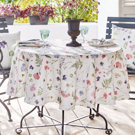 Frühlings-Tischwäsche mit bunten Blumenprints Tischdecke im Allover-Dessin Quadratische Tischdecke im abgepassten Dessin Langlebige, strapazierfähige Baumwolle Hochwertiger Digitaldruck Ergänzen sich mit anderen Teilen zu einer heiteren Kollektion Blühwiesen erfreuen sich immer größerer Beliebtheit. Sie bringen Farbe in unser Leben und sind wichtige Nahrungsquelle für Insekten. Die strapazierfähigen Baumwoll-Tischdecken zeigen Wiesenblumen in frischen Frühlingsfarben im Allover-Druck auf hellem Grund. Für die quadratische Tischdecke wurde das Motiv im abgepassten Dessin umgesetzt. Mit den anderen Teile der Serie in Blumenoptik ergänzen sich die Tischdecken zu einer heiteren Kollektion, die Ihren Essbereich frühlingshaft ausstaffiert. Langlebige 100 % Baumwolle in stabiler Leinwandbindung, Digitaldruck, Feinwäsche 40 °C.