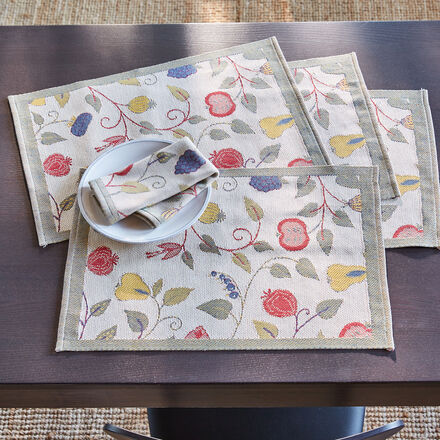 Gewebt wird diese Edel-Tischwäsche aus reinen Naturfasern vom schwedischen Hoflieferanten Ekelund. Die von Ekelund entwickelte, innovative und patentierte Webtechnik erlaubt es, detailreiche Bilder höchster Farbbrillanz aus nur 3 Grundfarben zu weben. Das blumige Dekor der Designerin Ulla Gustavson erstrahlt auf dieser Tischwäsche in seiner ganzen sommerlichen Pracht. Der überragenden Hand-werkskunst des ältesten familiengeführten Textilunternehmens der Welt (Gründungsjahr 1692) vertrauen neben dem schwedischen Königshaus auch der Kreml sowie Japans Kaiser Akihito. Hochwertigste Baumwollgarne schwerer Qualität. Mit 320 g/m² ist die Tischwäsche etwa 50 % stärker und damit dauerhafter als üblich, Maschinenwäsche 60 °C.