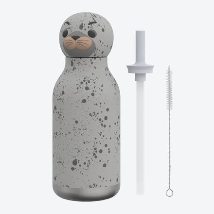Isolierflasche Robbe für Kinder Fasst 460 ml Vakuumisolierung bewahrt die Temperatur der Getränke bis zu 24 Stunden Auslaufsicherer Deckel Trinkflasche mit Strohhalm Ideal für unterwegs Ausreichend zu trinken ist wichtig, besonders wenn Ihr Kind unterwegs ist Die Thermosflasche Robbe in Grau gesprenkelt ist dafür der beste Begleiter, den man ungern vergisst Die vakuumisolierte Flasche mit Kupferschicht hält die ursprüngliche Temperatur bei kalten Getränken bis zu 24 Stunden, bei warmen Getränken bis zu 12 Stunden Mit undurchlässigem Schraubverschluss und biegsamem Trinkhalm Die Flasche aus robustem Material fühlt sich wunderbar weich an und lässt sich problemlos reinigen Wer es schlichter mag, kann den verspielten Deckel ganz einfach abnehmen und mit dem mitgelieferten neutralen Deckel verwenden Bestellen Sie für Geschwister oder als Geschenk die Trinkflasche Qualle (Nr 345HG10), die Trinkflasche Rakete (Nr 345HG12) oder die Trinkflasche Dino (Nr 345HG13).