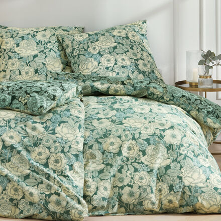 Twill aus 100 % Baumwolle Sehr weich, anschmiegsam und hautsympathisch Knitterarm und pflegeleicht Mit romantischen Rosenprints in 2 Farbstellungen Der Twill für die knitterarme Bettwäsche wird aus einem festen Baumwollgewebe in Köperbindung gefertigt. Der Stoff ist weich und fühlt sich anschmiegsam wie eine Pfirsichhaut an. Twill-Bettwäsche eignet sich ideal für die kalte Jahreszeit, denn dank der leicht aufgerauten Oberfläche ist sie wärmend, atmungsaktiv und hautsympathisch. Das robuste Gewebe ist langlebig, strapazierfähig und dazu absolut pflegeleicht. Die Webart in schräger Struktur macht das Gewebe knitterarm. Der allover Rosenprint in zwei harmonischen Farbstellungen auf Vorder- und Wendeseite setzt sich aus vielen großen und kleinen, handgezeichneten Rosenblüten zusammen. Reißverschluss, 100 % Baumwolle, OEKO-TEX® STANDARD 100, waschbar bei 60 °C, trocknergeeignet.