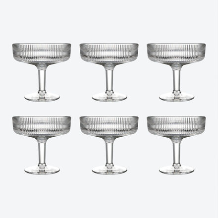 Perfekt für Eis, Desserts, Vorspeisen Moderne Reliefstruktur Aus den Werkstätten von La Rochère, Frankreichs ältester Glasmanufaktur Neben ansprechenden Eis- und Dessert-Kreationen bringt sie mit ihrer modernen Reliefstruktur und attraktiver Schalenform auch elegante Vorspeisen wie Krabbencocktails besonders schön zur Geltung. Gefertigt wird sie in Frankreich von La Rochère, in deren Werkstätten bereits seit 1475 hochwertiges Glas in der Tradition stilvoller Tischkultur entsteht. Standfester Fuß, stoßfester Rand, platzsparend stapelbar. 290 ml Inhalt, Ø 12,4 cm, 12 cm hoch, spülmaschinenfest.