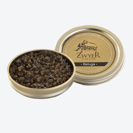 Wildkaviar aus dem Kaspischen Meer war stets begehrt. Um das Überleben wild lebender Störe zu sichern, erlaubt die internationale Artenschutzkonferenz nur den Export aus Zucht. Unser Kaviar kommt aus nachhaltigen, kontrollierten, naturnahen Aquafarmen. Diese preisgekrönte Delikatesse hat sich in unzähligen Blinddegustationen auch gegen Wildkaviar mühelos durchgesetzt. Alle Sorten mild gesalzen (Malossol), 3 Monate haltbar. ZwyerCaviar Beluga: Der König des Kaviars. Rogen von einer Kreuzung aus Beluga- und Baeri-Stör, sehr dünnschalig, von außergewöhnlicher Größe (ca. 3,5 mm), schimmert stahlgrau. Milder, feincremiger Geschmack, leichte Butternote.